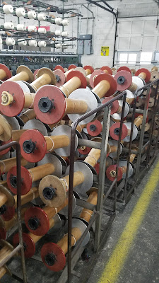 One of the many machines used for spinning. These machines are very old and well maintained. When they do die they are saved for parts, imagine the stories they can tell from over a century of spinning….WW I, WWII hoisery, uniforms, 70’s ponchos.