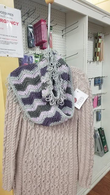 everywhere. Above is my design for Kraemer Yarns, Au Natural Infinity Scarf on display. (click for details)