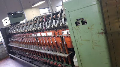 One of the many machines used for spinning. These machines are very old and well maintained. When they do die they are saved for parts, imagine the stories they can tell from over a century of spinning….WW I, WWII hoisery, uniforms, 70’s ponchos.