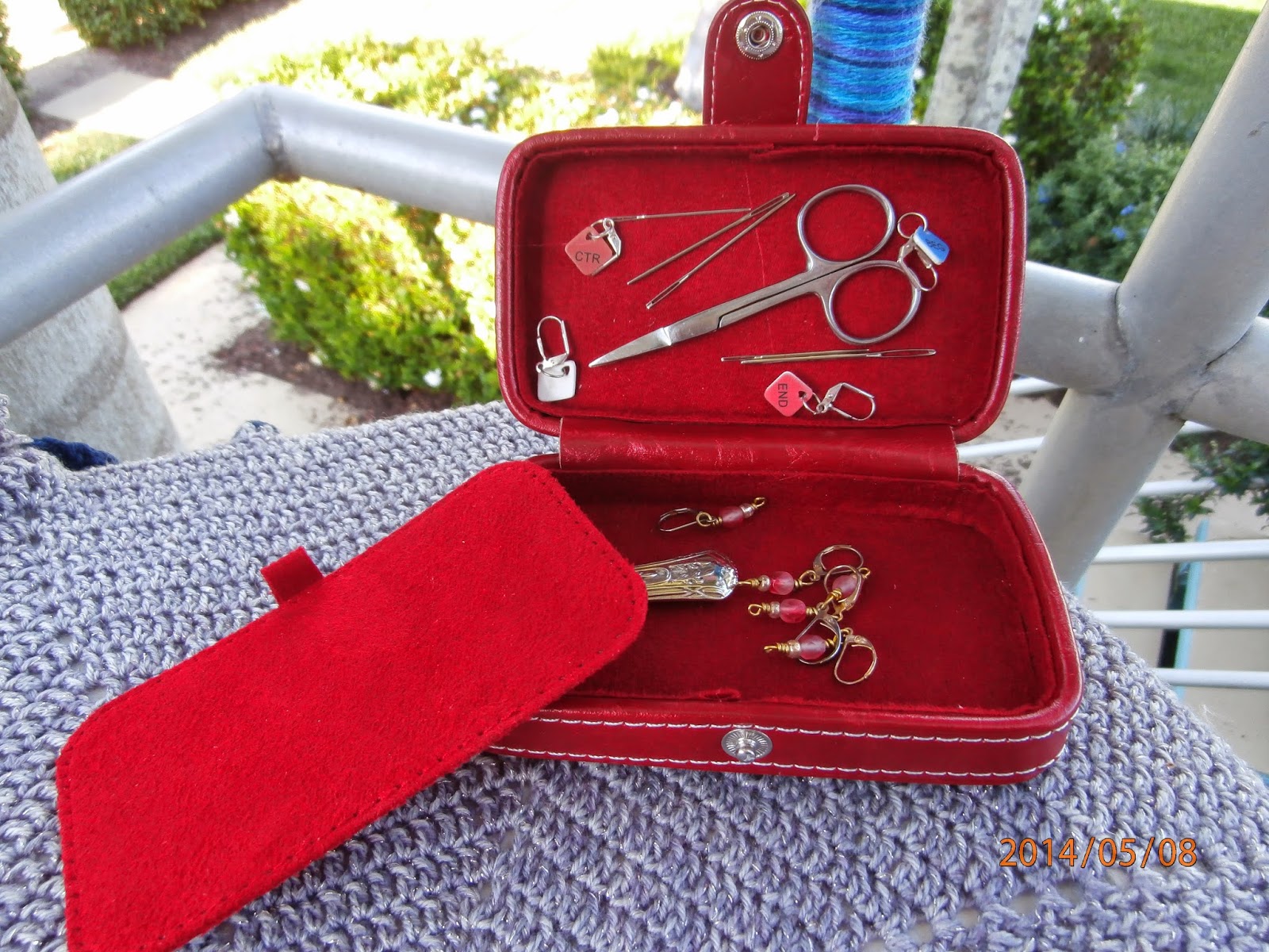 The Better Buddy case has the same interior and exterior features as the bags but….the inside bottom and lid have a built in magnet to keep your small metal accessories, like sewing/yarn needles, stitch markers and scissors, stable. I love that I can easily find the size needle I need in a breeze. The lid and bottom have an easily removable divider to keep things in separate compartments. Everything stays secure with a strong snap closure the look is finished with a beautiful stitched edge. I have it in my purse as I write this, along with a small project for a day excursion.