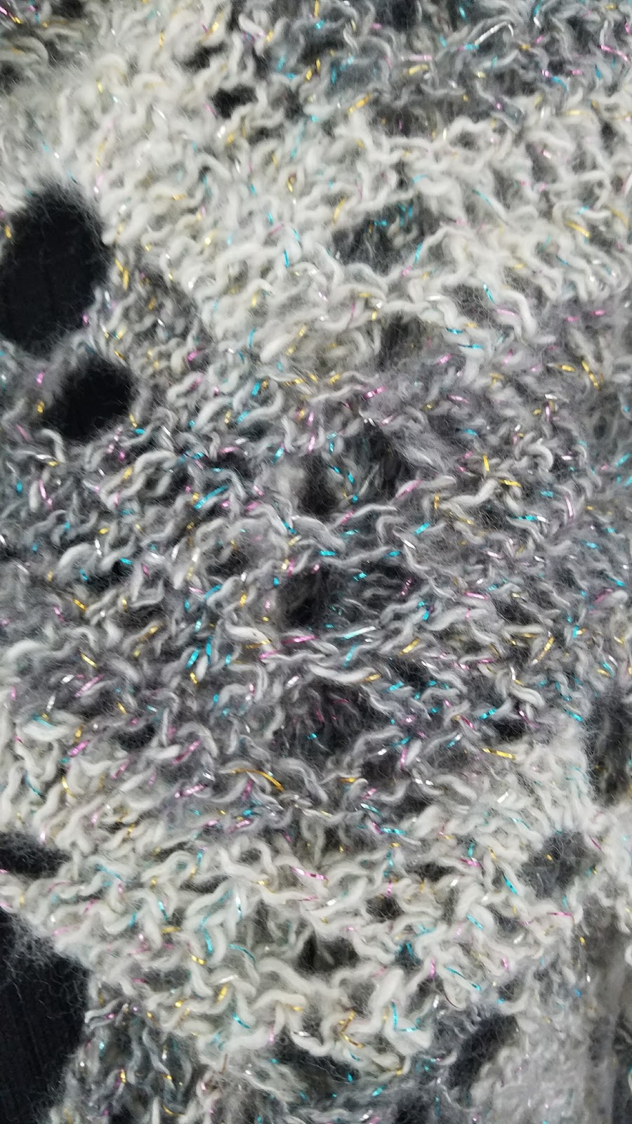 The yarn used is Lion Brand Shawl in a Ball, color OM Opal. I can see where Pattie see’s ice and snow.